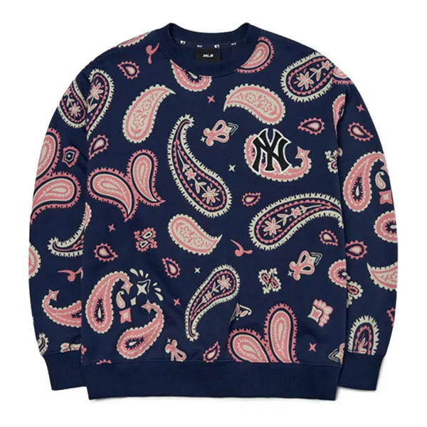 MLB 男女同款圓領腰果花衛衣-紐約洋基隊-深藍海軍藍(3AMTI0224-50NYD) 銷售