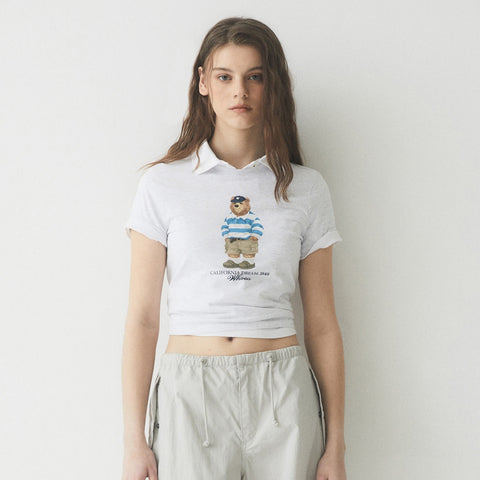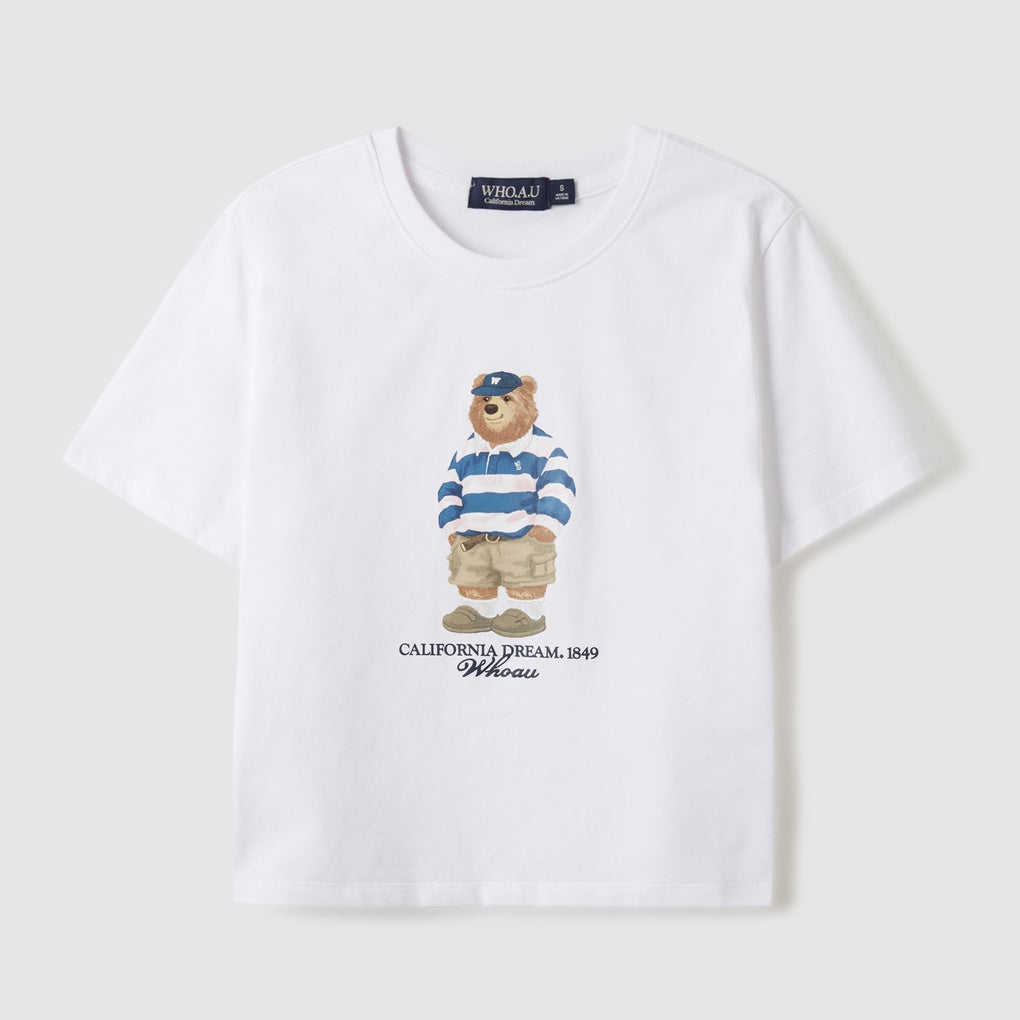 WHO.A.U 白色短袖T恤 中間大熊圖案(WHRPE2424F) 銷售
