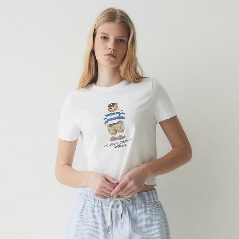 WHO.A.U 白色短袖T恤 中間大熊圖案(WHRPE2424F) - S