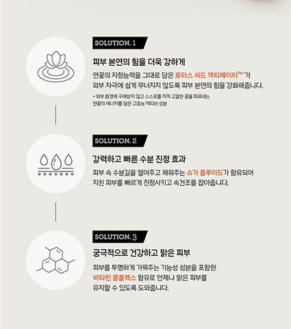 l 神仙水精華中含93.1%發芽中蓮花籽提取物,為肌膚帶來重要營養,為肌膚補水, 提亮膚色及增加肌膚透明度及光澤。