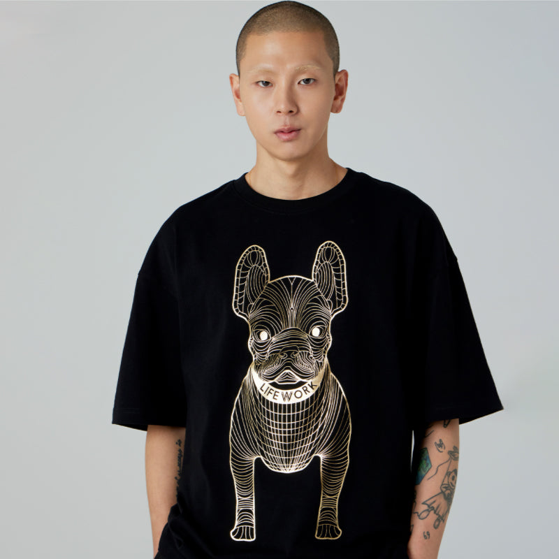 LifeWork 韓國 黑色 金狗線圖 T恤(LW235TS091) - 黑色 金狗線圖 Pattern Black / XS