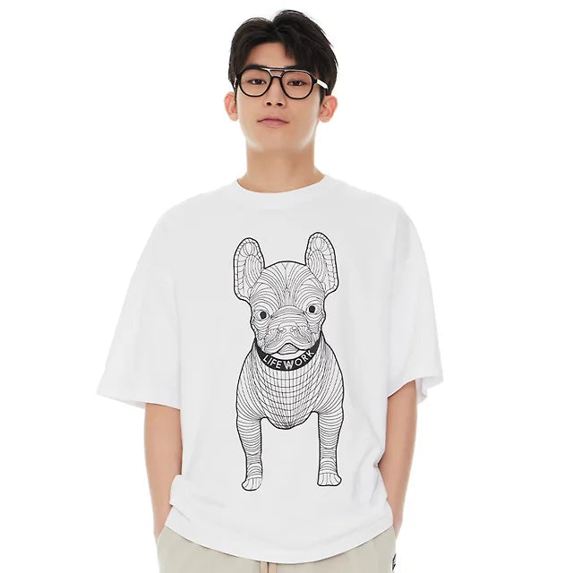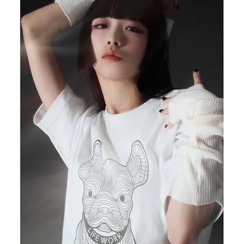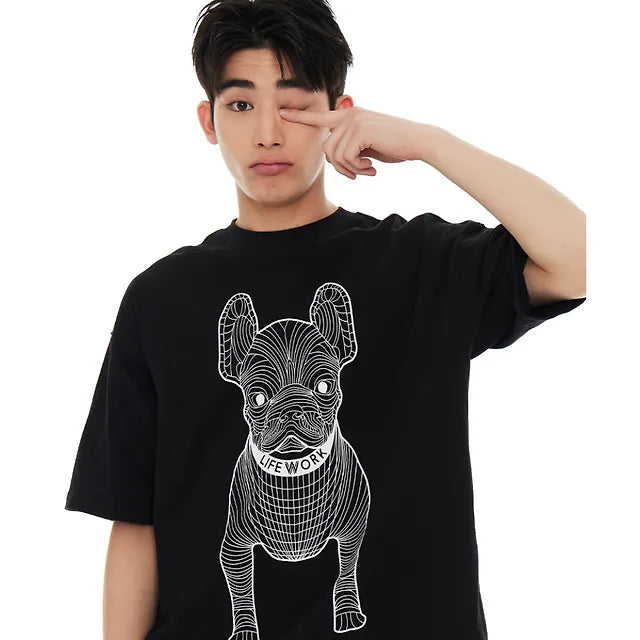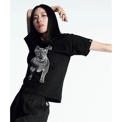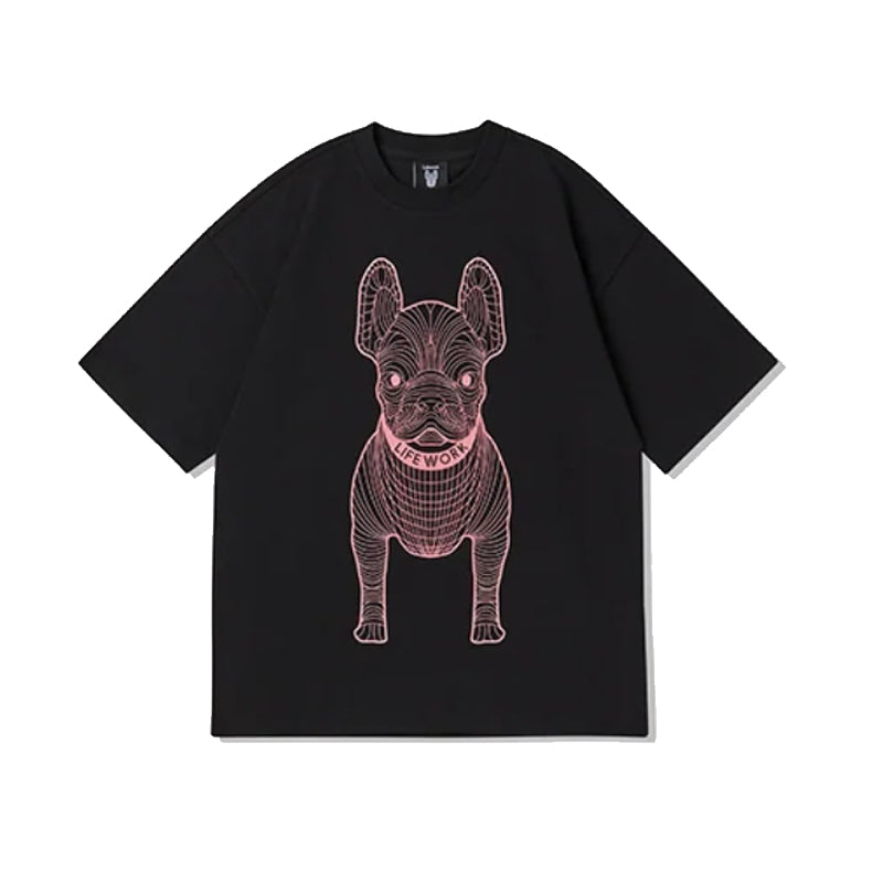 LifeWork 韓國 圓領短袖T恤(LW245TS990) - 黑色(白色圖案) Jet Black / XS