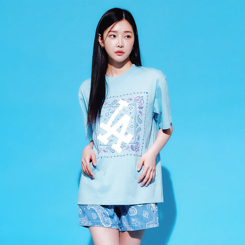 MLB 男女圓領短袖T恤-洛杉磯道奇隊-淺天藍色(3ATSI0133-07SBL) - S